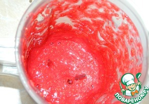 Малину измельчить блендером в пюре. Замороженную предварительно разморозить.