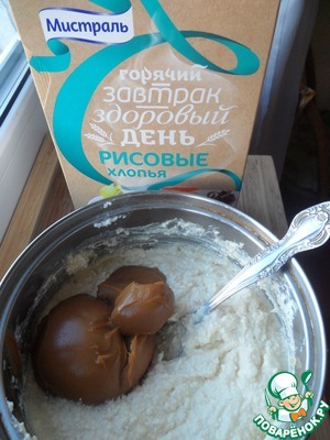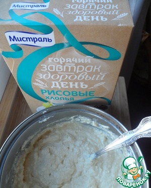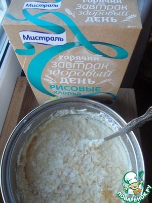 Добавить рисовые хлопья ТМ "Мистраль" и перемешать. Хлопья при выпечке замечательно разбухнут!