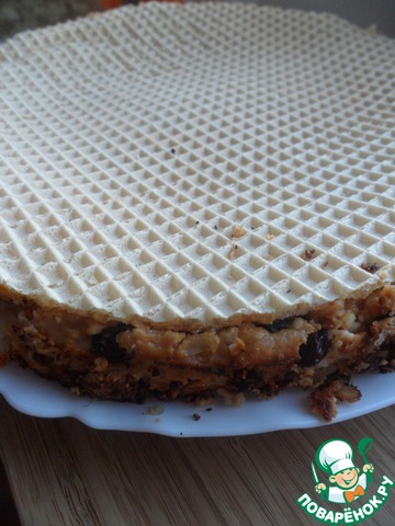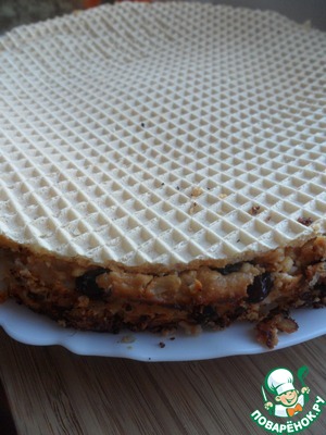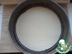 На дно разъемной формы, смазанной маслом, выкладываем вафельный корж.
