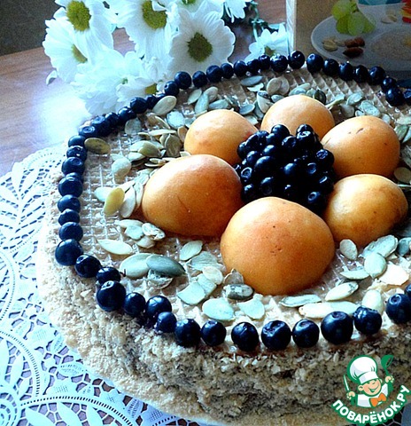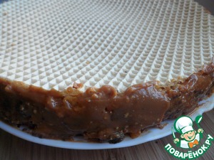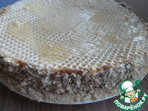 1 вафельный корж измельчить и им посыпать края, верх промазать медом.