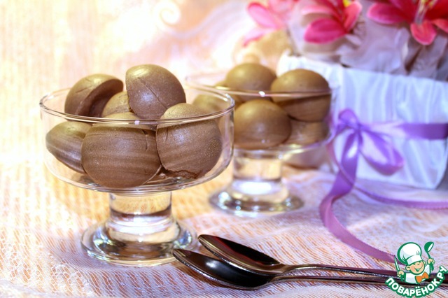 Немножко не хватило белого, добавила пару плиточек горького шоколада, поэтому такой цвет. Вкусно, нежно, пломбирно!! И готовится легко!