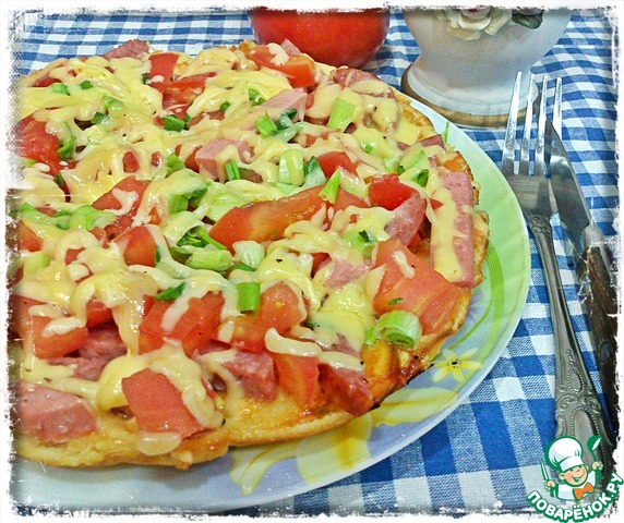 Пицца за 10 минут, без дрожжей и майонеза!!! Эта пицца - как палочка-выручалочка, когда позвонили друзья и сказали, что будут через 15 минут. К их приходу можно сделать вот такую пиццу. Главное ее отличие от остальных заключается в тесте - оно жидкое и делается без дрожжей. Ингредиенты для нее всегда можно найти в холодильнике. Она получается вкусная, быстрая, ароматная.