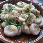 3. Замесить тесто (если муки мало можно ещё добавить, тесто не должно прилипать к рукам), затем раскатать колбаски и порезать на кусочки (примерно два см)