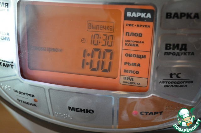 Включаю мультиварку в режим "Выпечка", время 1 час.