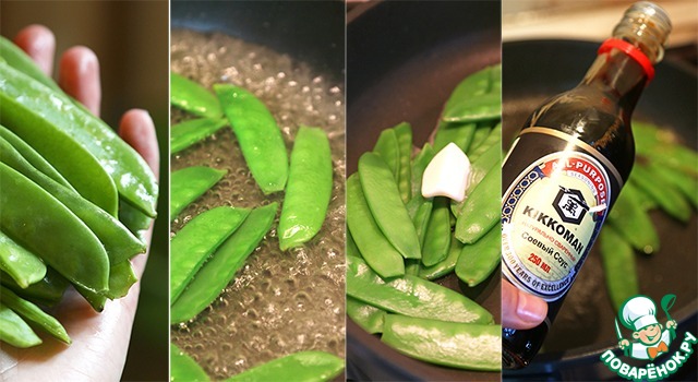 Я готовила горошек, использовав один из моих же рецептов, а именно: бланшировать минут 5, потом обжарить на сливочном масле, в конце добавив по вкусу немного соевого соуса. -