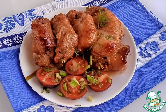 Жарить в духовке на гриле или на бутылке примерно 1 ч- 1ч 30 мин при Т=200-220 град. (зависит от духовки)