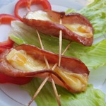 Вторую половинку завернуть, прикрыв первую, и заколоть зубочисткой. Поставить в микроволновку на 1 мин.