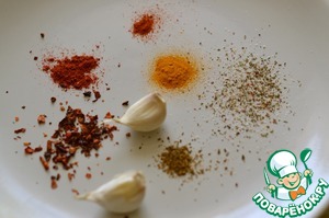 1. Все специи, измельченный чеснок, масло, соль смешать.