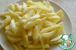 3. Пока мясо запекается картофель почистить, порезать произвольно. Я нарезала соломкой.