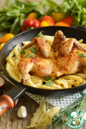Рецепт «Ароматный цыпленок с жареным картофелем»: