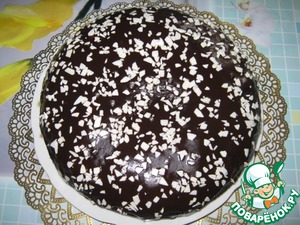 Залить пирог глазурью и украсить осколками белого шоколада. Угощайтесь, приятного чаепития.