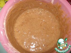 Затем выливаем вторую половину теста. Включаем режим "Выпечка"на 1 час, температура в моей мультиварке 120 гр.