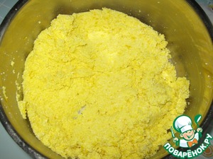 Всё хорошо перемешиваем, получается вот такая жёлтая масса. Если творожная масса получилась жидкая, то добавьте 1 ч. л. крахмала.