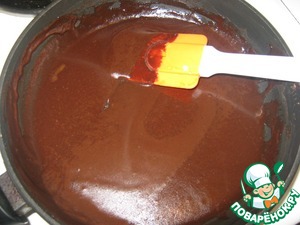 Приготовим шоколадную глазурь. В кастрюлю или сковородку вылить молоко, добавить сахар и какао-порошок, всё хорошо перемешать. На плите на небольшом огне довести до густоты, всё время помешивая чтобы не подгорело. Затем добавить сливочное масло и хорошо перемешать.