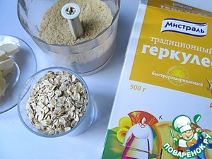 • Печенье измельчаем в блендере в мелкую крошку, хлопья отмеряем стаканом объемом 200 мл.