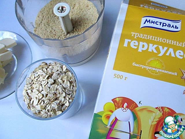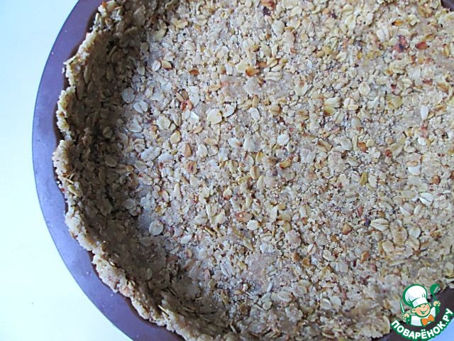 А печенье можно чем-то заменить? Может, замесить песочное тесто и к нему добавить овсяных хлопьев. Покупать печенье как-то "не кошерно", а печь, чтобы снова отправить перепекаться в пирог -не выходит, съедается все печенье