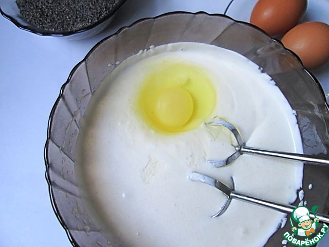 • Мак тщательно перемалываем в кофемолке. К сметане добавляем сахар и ванильный сахар, перемешиваем миксером на самой низкой скорости.