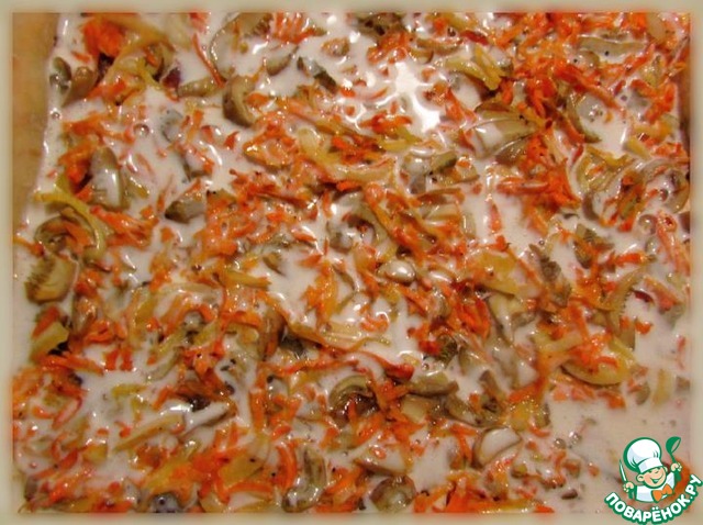 • Заливаем верх пирога заливкой и вновь ставим в духовку минут на 20 - 25. До полной готовности.