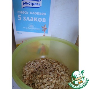 Хлопья залить кипятком, так чтобы только их покрыть. Закрыть крышкой и оставить запариваться минут на 10.