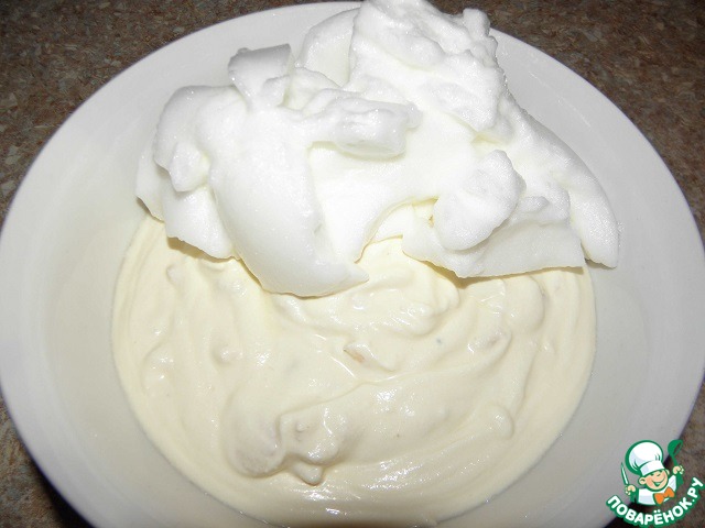 • Добавить взбитые белки к тесту, аккуратно перемешать, выложить тесто в форму и поставить в духовку на 25минут, при температуре 180% ( время приготовления может быть чуть больше, или чуть меньше. все зависит от духовки)