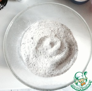 Муку просеиваем с разрыхлителем, затем смешиваем с сахаром, солью, тертым шоколадом и ванилином.