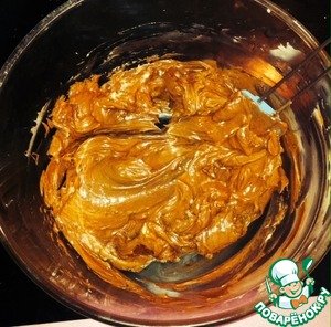 Для крема я взбила сливочное масло со сгущенкой, в конце добавила растопленный шоколад. Важно, что все продукты должны быть одной температуры, комнатной.