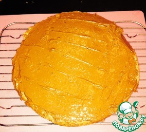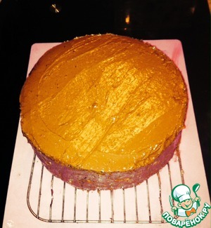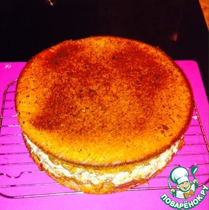 И, наконец, второй бисквитный корж смазала шоколадным кремом, водрузила сверху, кремом вниз.
