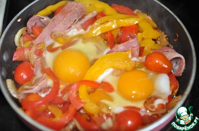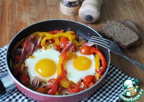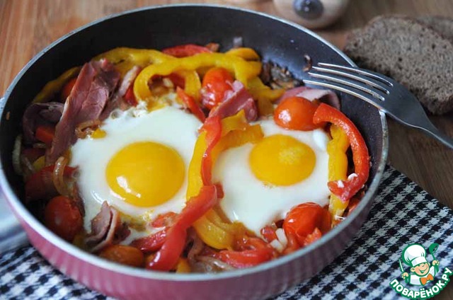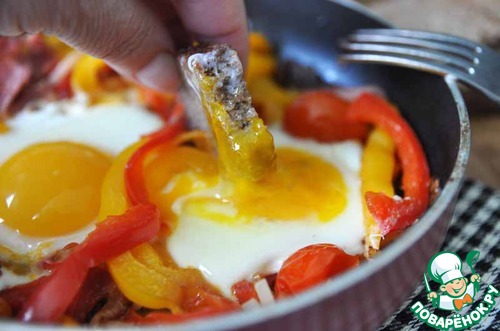 • Жарим 5-7 минут, пока не схватится белок, сразу подаём горячей на сковороде. Приятного аппетита!