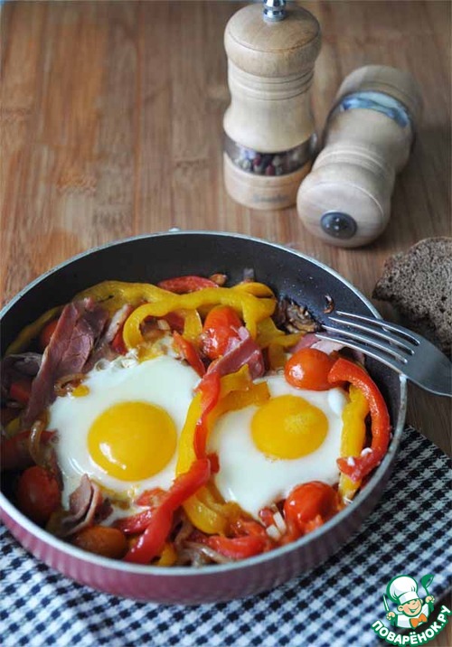 Предлагаю Вам воскресным утром яркий испанский завтрак. Это не банальная яичница с перцем и помидорами - это завтрак для настоящих гурманов. Ярко, вкусно, сытно, быстро!