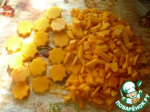 Дно чаши мультиварки застилаем пергаментом, смазываем жиром и я выложила тыквенные фигурки. Но это не обязательно.