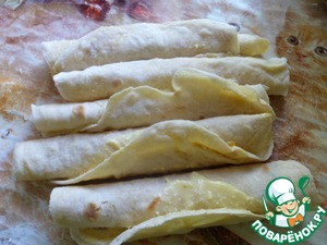 Сворачиваем рулетиком. Делаем так со всеми лавашами.