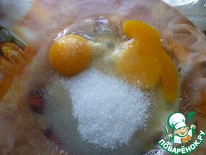 2 яйца соединяем с 2 ст. л. сахара и 0.5 пакетика ванильного сахара. -