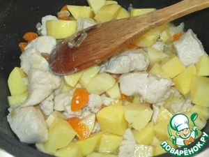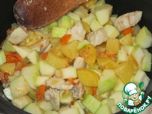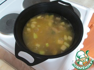 Картофель дошел до полуготовности. Вводим кабачок, перемешиваем