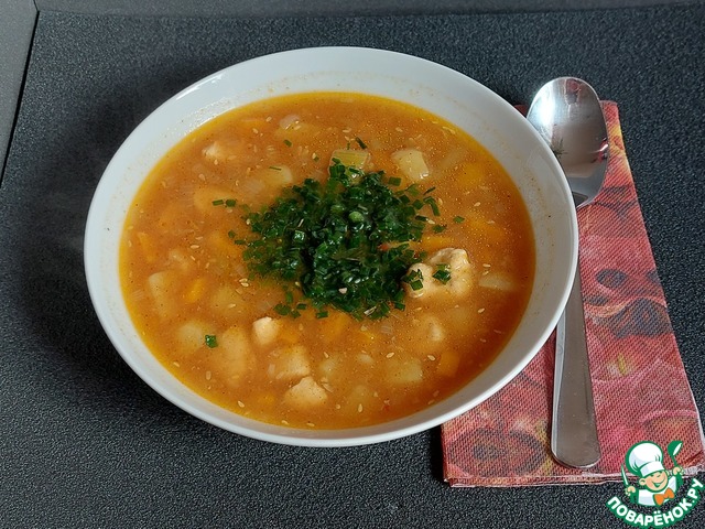 Украсьте нарезанным зеленым луком и укропом и подавайте.