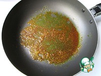Разогреваем на сковороде растительное масло без запаха, добавляем специи, держим на огне 10 секунд.