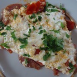 Описание:Вкусное, быстрое в приготовлении блюдо на завтрак, вместо яиц в котором используется адыгейский сыр или панир с небольшим количеством сметаны. "Омлет" наиболее будет похож на настоящий, если в него добавить черную соль, которая обладает специфическим яичным ароматом. У меня этой специи не было, и я попробовала обойтись без нее, заменив гранулированным чесноком, результатом осталась довольна: даже без этой соли блюдо получилось похожим на настоящий омлет!