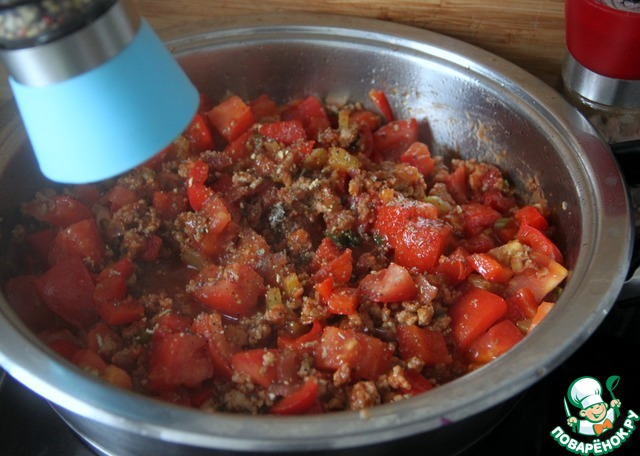 ... добавить в сковороду пассерованные томаты или томатный сок. Для равновесия кислоты добавить сахар.