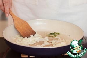 На сковороде разогреть растительное масло, положить листья шалфея и лук, готовить до прозрачности лука