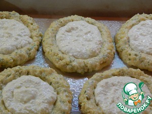 Руками формируем лепешки (руки смачиваем в воде) и выкладываем их на смазанный маслом противень.