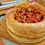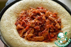 11. Смазать верх пирога яйцом и посыпать кунжутом.