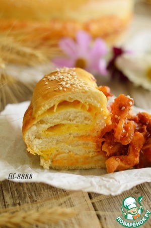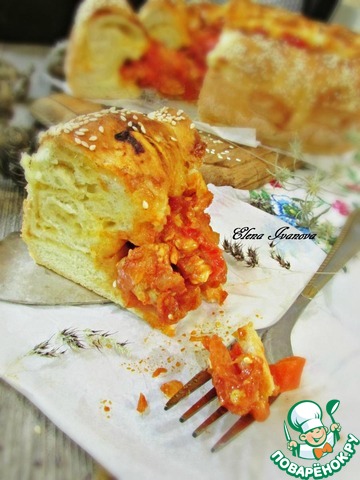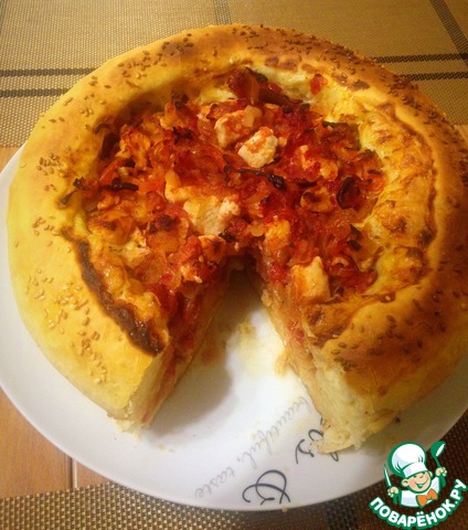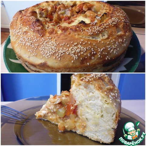 Хочу угостить всех очень вкусным пирогом. Это один из любимейших пирогов в нашей семье. Пеку его довольно часто, но никак не получалось сделать фото, так как все его уже ждут, и съедается он всегда теплым. Различные варианты начинок дают возможность каждый раз получать новый вкус. Количество начинки и сырной части тоже можно изменять.