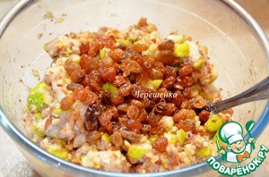 Изюм замочить в роме или чае, если кушать будут детки, на 30 минут.