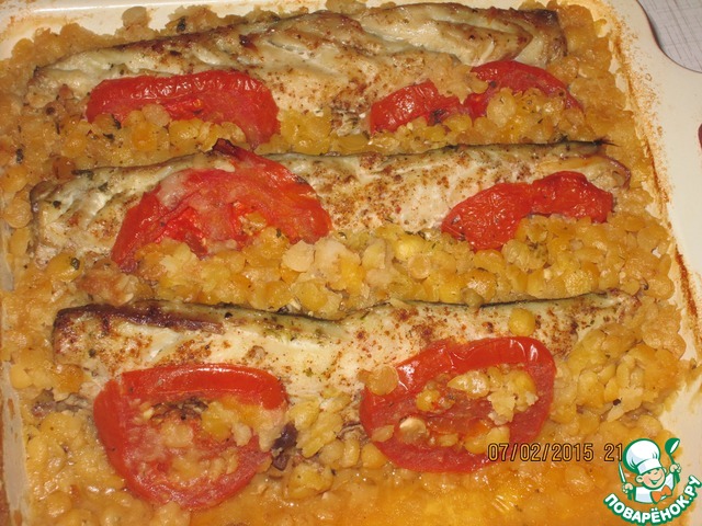 Эксперементируйте с крупами, меняйте горох на чечевицу, заливайте сливками, а не водой (тогда при маринаде не кладите лимон) и шикарная рыбка с изумительным чечевичным пюре порадует вас и ваших близких.
