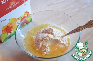 Добавить муку, сахар, соль, соду, растительное масло и хорошо перемешать вилкой.