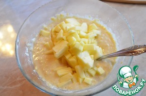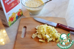 Яблоко очистить от кожуры, удалить сердцевину и нарезать небольшими кубиками.