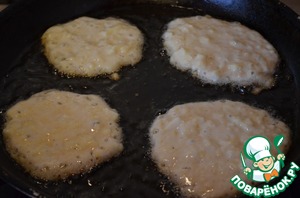 Обжаривать оладушки на растительном масле, выкладывая по 1 столовой ложке теста.