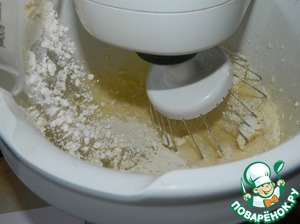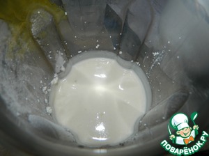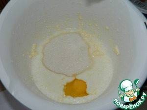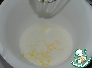 В кефир добавляем соду, перемешиваем и даем постоять пару минут. Затем добавляем мягкое масло.