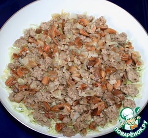 На капусту выложить ранее подготовленную начинку.