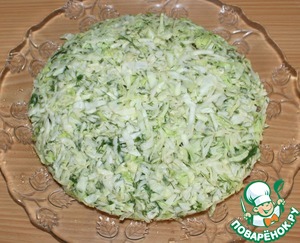 Сковороду смазать растительным маслом, выложить половину капусты и разровнять.