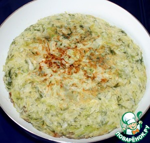 И сверху на начинку выложить остальную капусту и поджарить пирог.